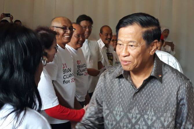 Telegraf, Jakarta - Mantan Danjen Kopassus Agum Gumelar menghadiri deklarasi dukungan relawan Bravo Cijantung untuk Pasangan Joko Widodo-Ma'ruf Amin. Agum…