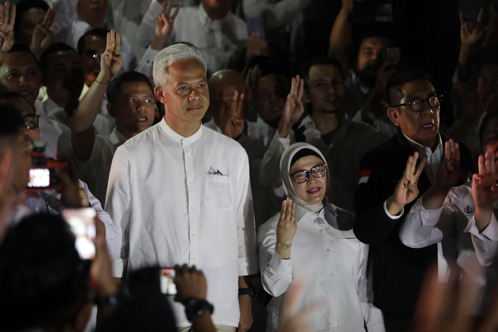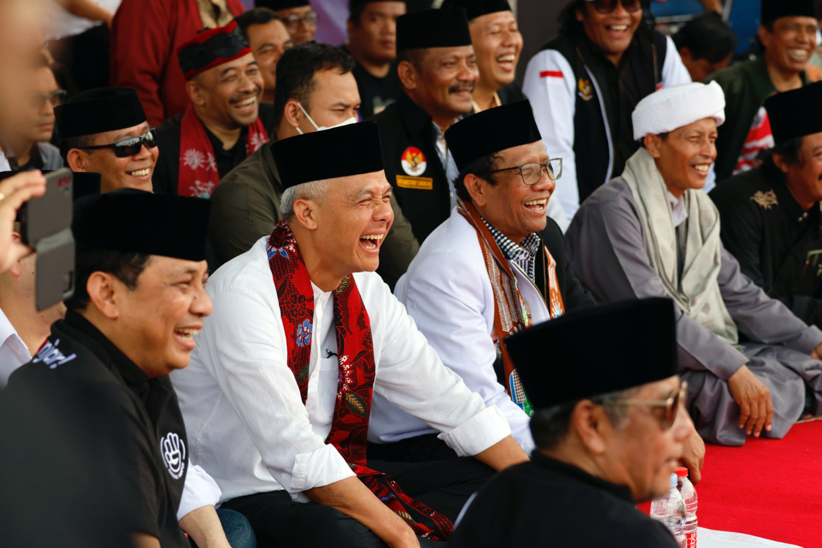 Telegraf - Calon presiden (capres) nomor urut 3, Ganjar Pranowo, menyapa hangat anak-anak muda saat menghadiri acara konser musik tanah…
