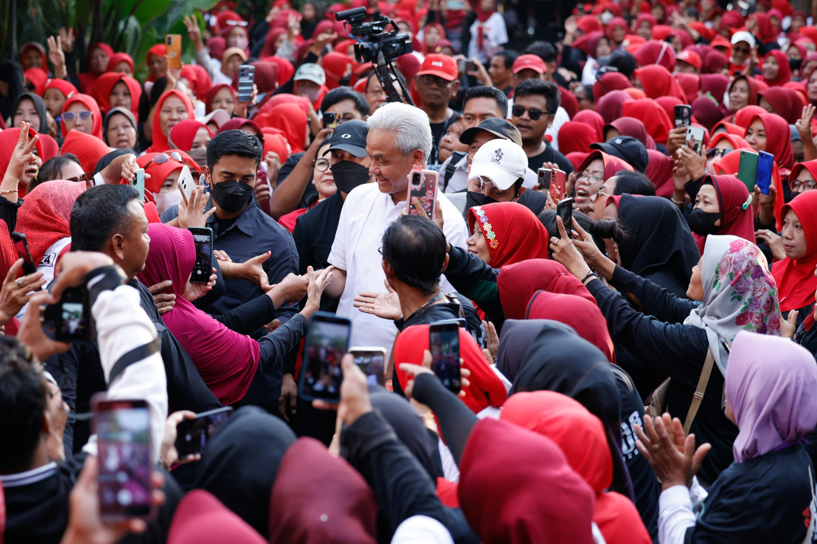 Telegraf - Capres 2024 nomor urut 3, Ganjar Pranowo disambut antusias ribuan warga Karanganyar, Jawa Tengah, Minggu (24/12/2023). Rasa kangen…