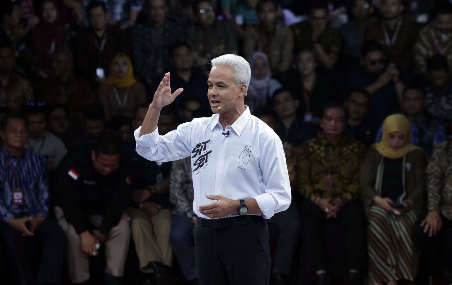 Telegraf - Ganjar Pranowo, Capres 2024 nomor urut 3 tampil tegas saat menyampaikan visi-misi dalam debat capres pertama di Komisi…