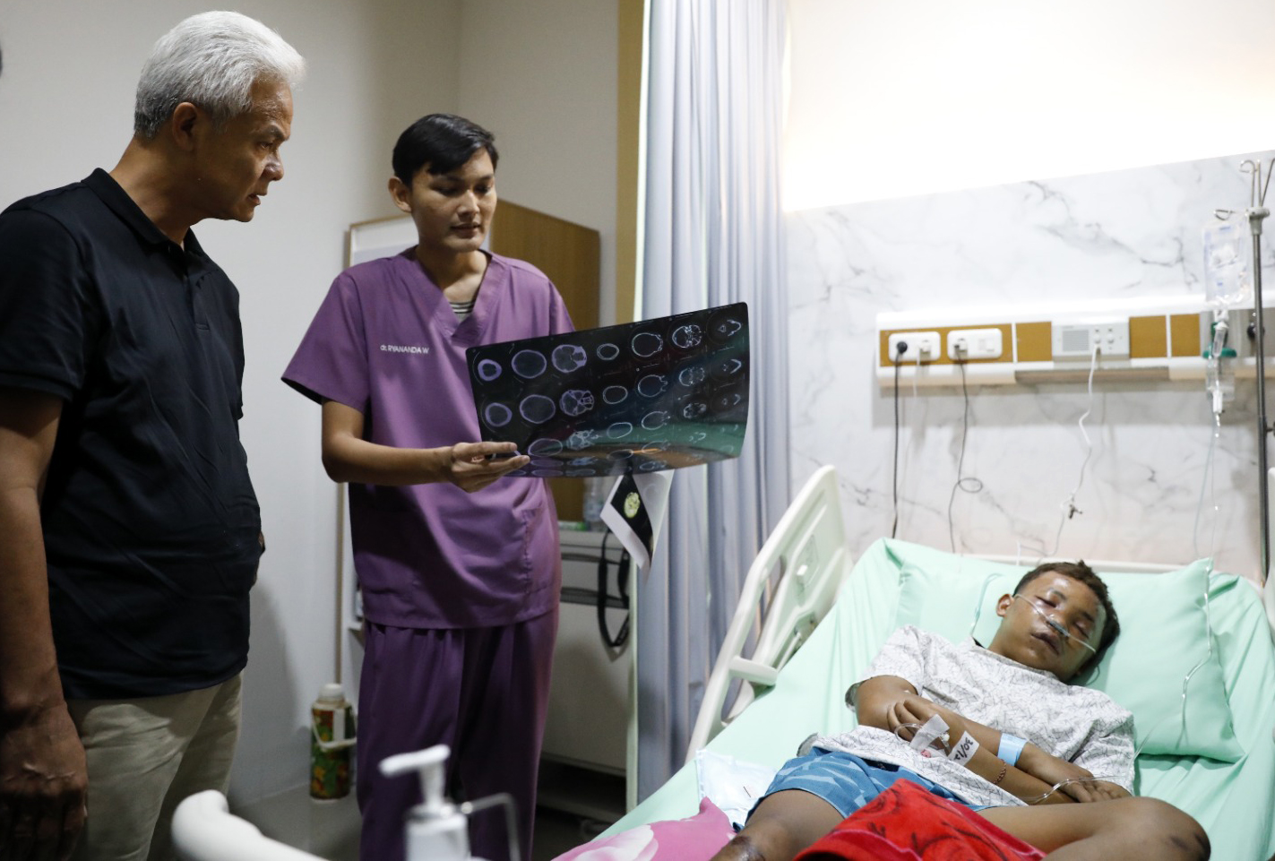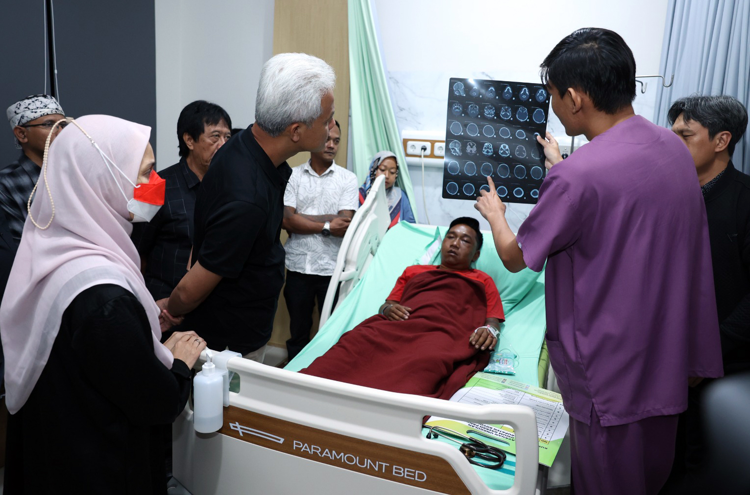 Telegraf - Ganjar Pranowo bersama istri, Siti Atikoh menjenguk dua relawan yang menjadi korban penganiayaan oknum TNI di RSUD Pandan…