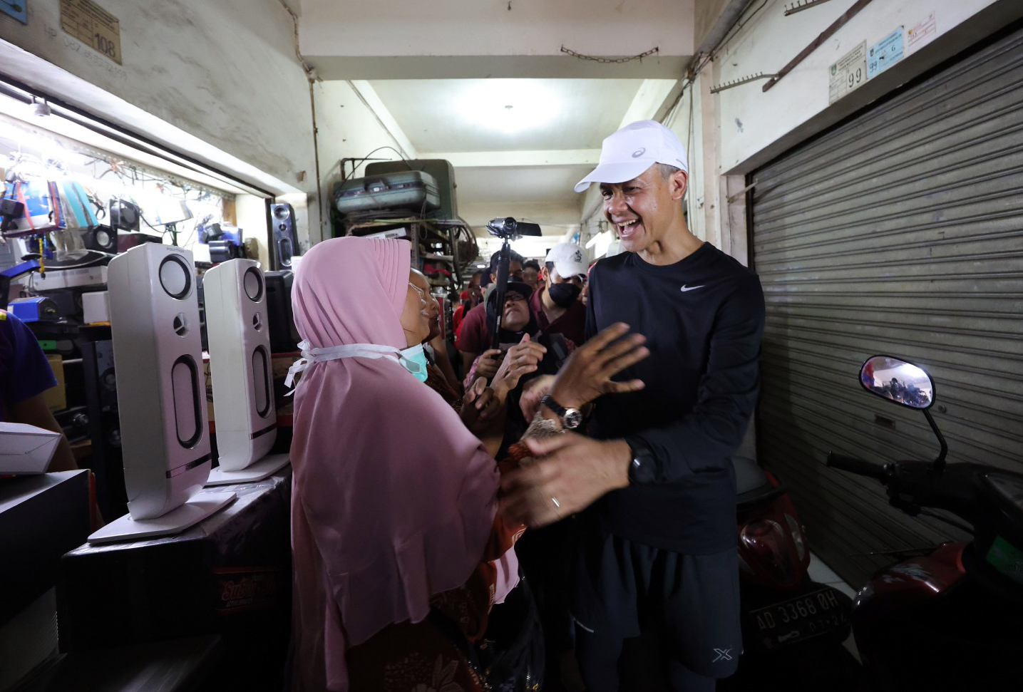 Telegraf - Capres 2024 nomor urut 3, Ganjar Pranowo disambut antusias para pedagang Pasar Klitikan Notoharjo Solo saat berkunjung ke…
