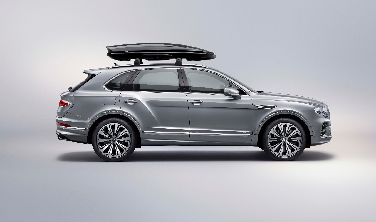 Palang bermerek adalah dasar sistem penyimpanan yang dipasang di atap Bentayga, dan mengamankan kotak atap atau pembawa ski dan snowboard ke mobil. Dirancang untuk mendukung kinerja aerodinamis, mereka mengunci dengan aman ke rel atap untuk memastikan perjalanan aman.