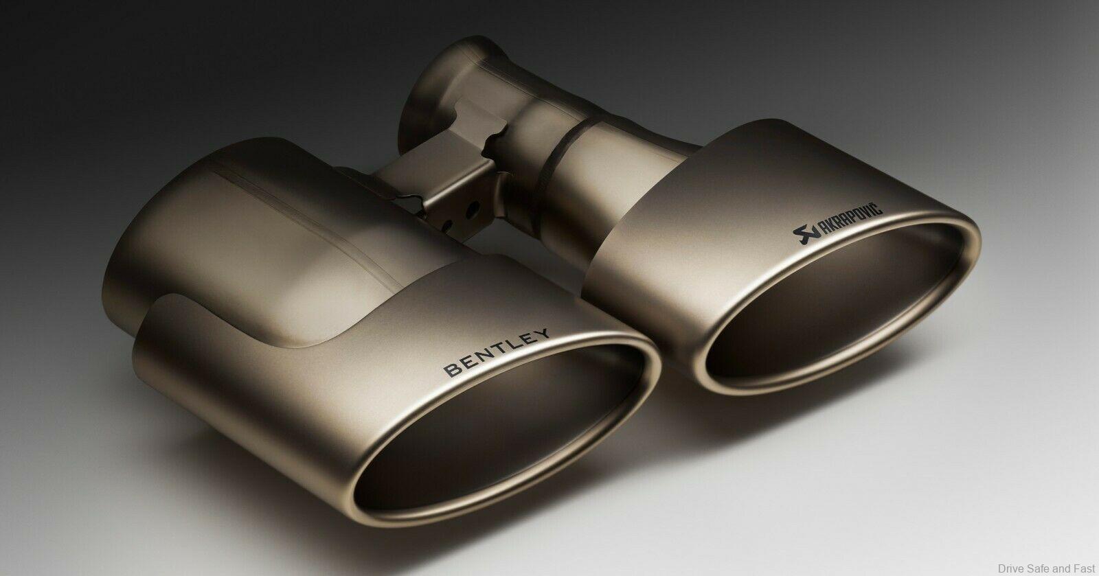 Sistem ringan terbuat dari titanium bermutu tinggi, dan terdiri dari satu set pipa penghubung, knalpot, dan dua set pipa knalpot oval, yang diukir dengan logo Bentley dan Akrapovic dan dilapisi khusus untuk meningkatkan daya tahan dan perlindungan.