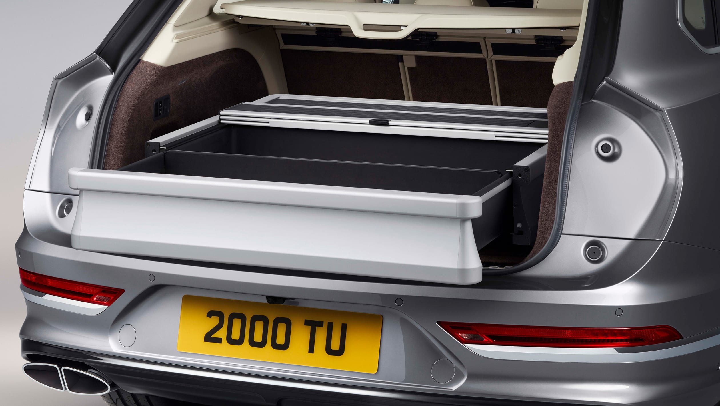 Koper dipesan lebih dahulu menawarkan kombinasi koper tradisional dan akhir pekan santai. Kasingnya dapat terbuka sepenuhnya dengan tetap mempertahankan tampilan kasual lembut saat ditutup dan menampilkan bentuk ‘V’ unik yang terinspirasi oleh bahasa desain Bentayga. Bagasi standar juga tersedia sebagai pilihan dengan kulit anak sapi Beluga.