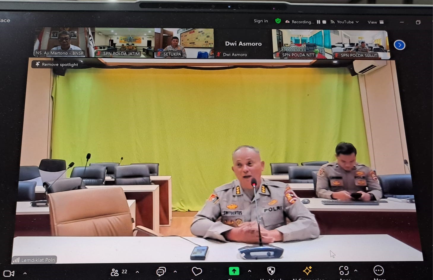 Pada Rabu, 14 Agustus 2024, LSP Polri menggelar sosialisasi sertifikasi jarak jauh secara online melalui platform Zoom.