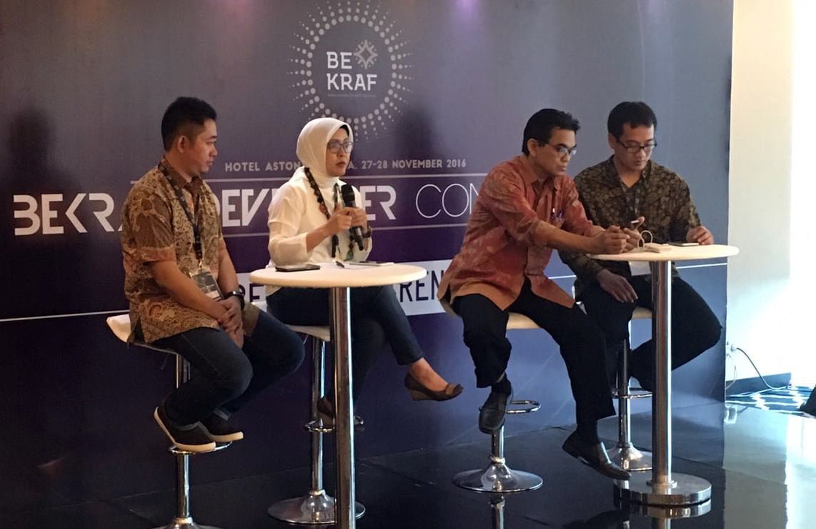 Foto : CEO Educa Studio, Andi Taru , Country Marketing Leader IBM , Vina Kasih , Deputy Infrastruktur Badan Ekonomi Kreatif , Hari Santoso Sungkari serta CEO Dicoding , Narenda Wicaksono. | Bekraf Indonesia