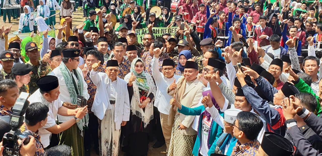Ribuan warga Kabupaten Cianjur, khususnya dari kalangan Nahdliyin menyambut kehadiran Cawapres Nomor Urut 01 KH Ma’ruf Amin dalam peringatan Harlah ke-93 Nahdlatul Ulama di Lapangan Prawata Sari, Cianjur, Jawa Barat, Kamis (14/2/2019). FILE/DOK/IST. PHOTO