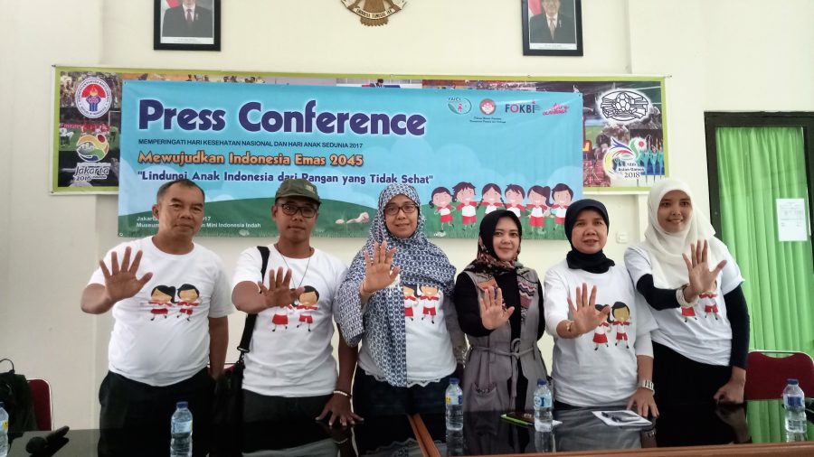 Dalam acara Peringati Hari Kesehatan Nasional dan Hari Anak Internasional Pemerintah dan LSM tanda tangani petisi Lindungi Anak Indonesia dari Pangan yang Tidak Sehat, di Jakarta, minggu (19/11/17).