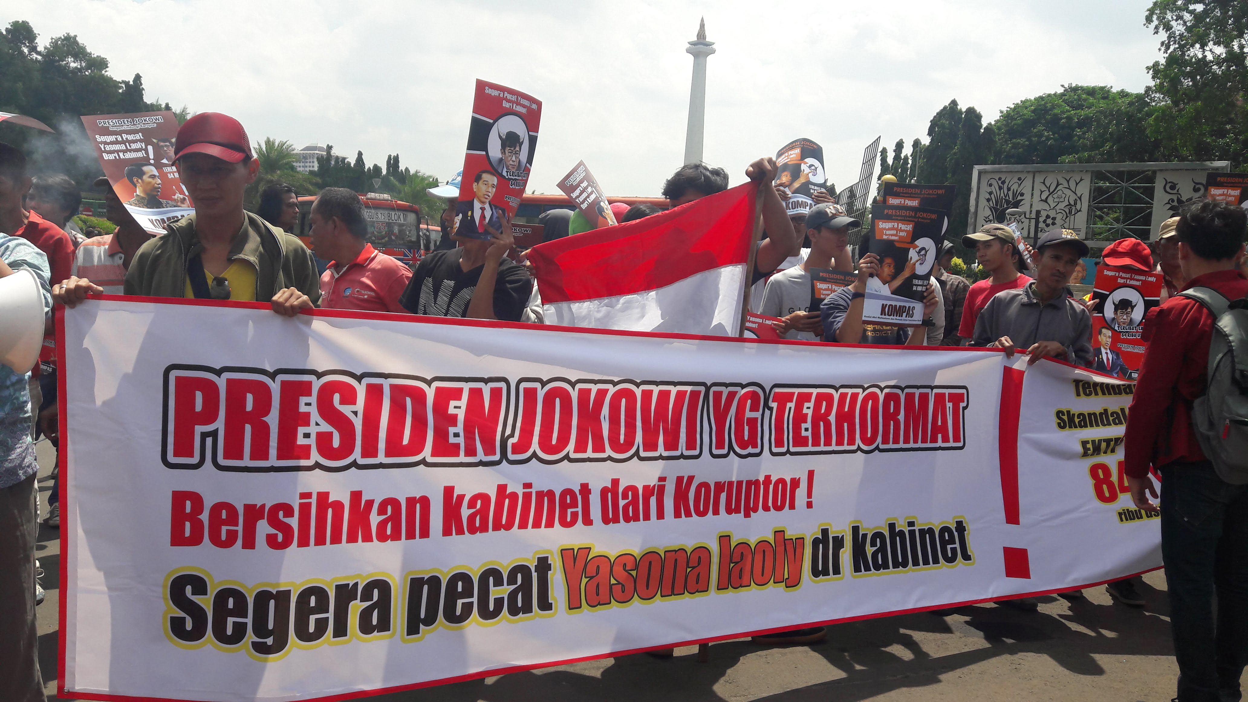 Aksi unjuk rasa ini dilaksanakan dengan Tema: “Reshuflle Yasona Laoly dari Kabinet, Bersihkan Kabinet dari Koruptor”.