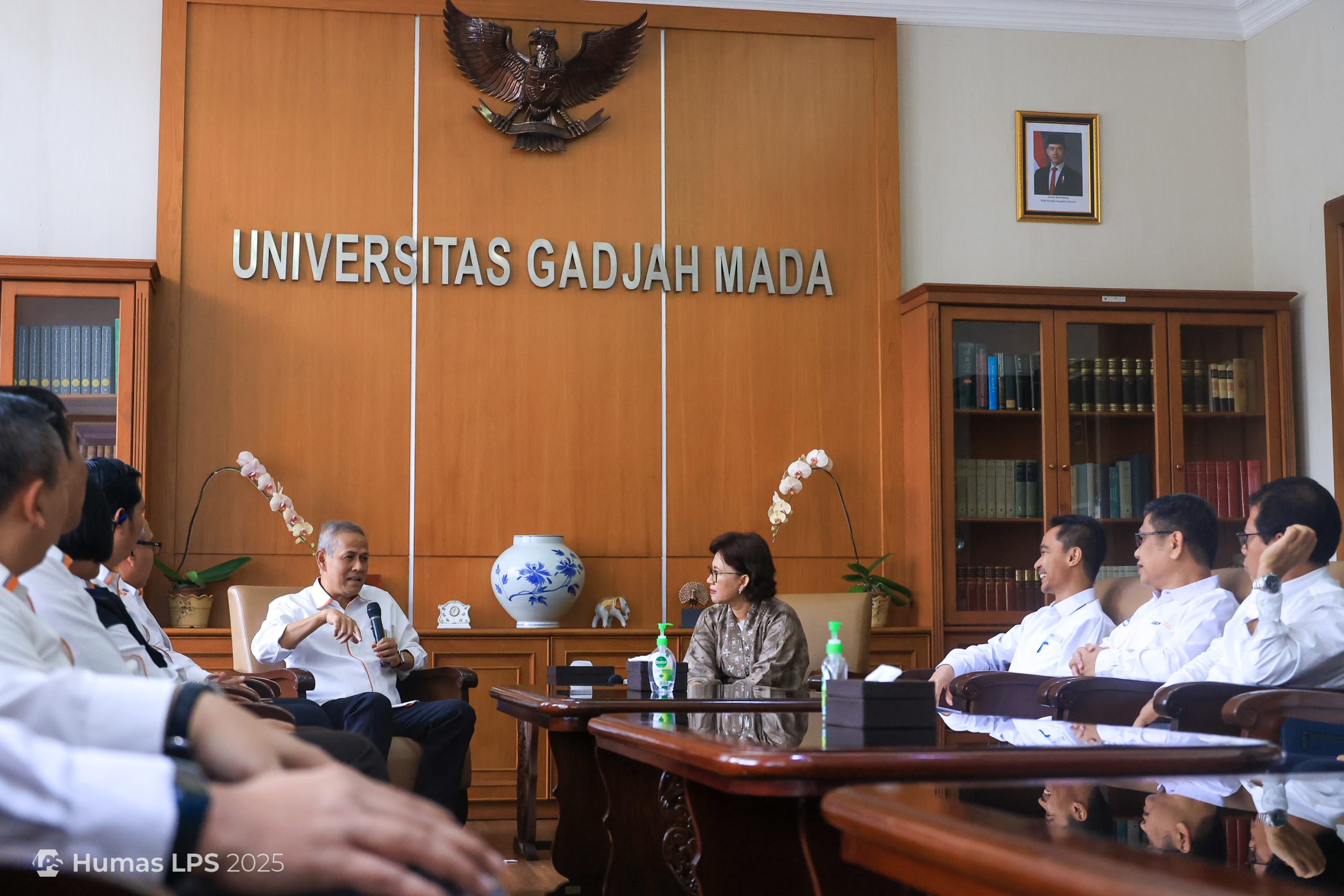 Rektor UGM yang juga hadir pada penandatanganan PKS antara LPS dan UGM, menyampaikan terima kasih dan apresiasi kepada LPS atas kontribusi LPS selama ini dalam pengembangan mahasiswa-nya dan juga kesempatan berkarir bagi alumni-alumni UGM di LPS.
