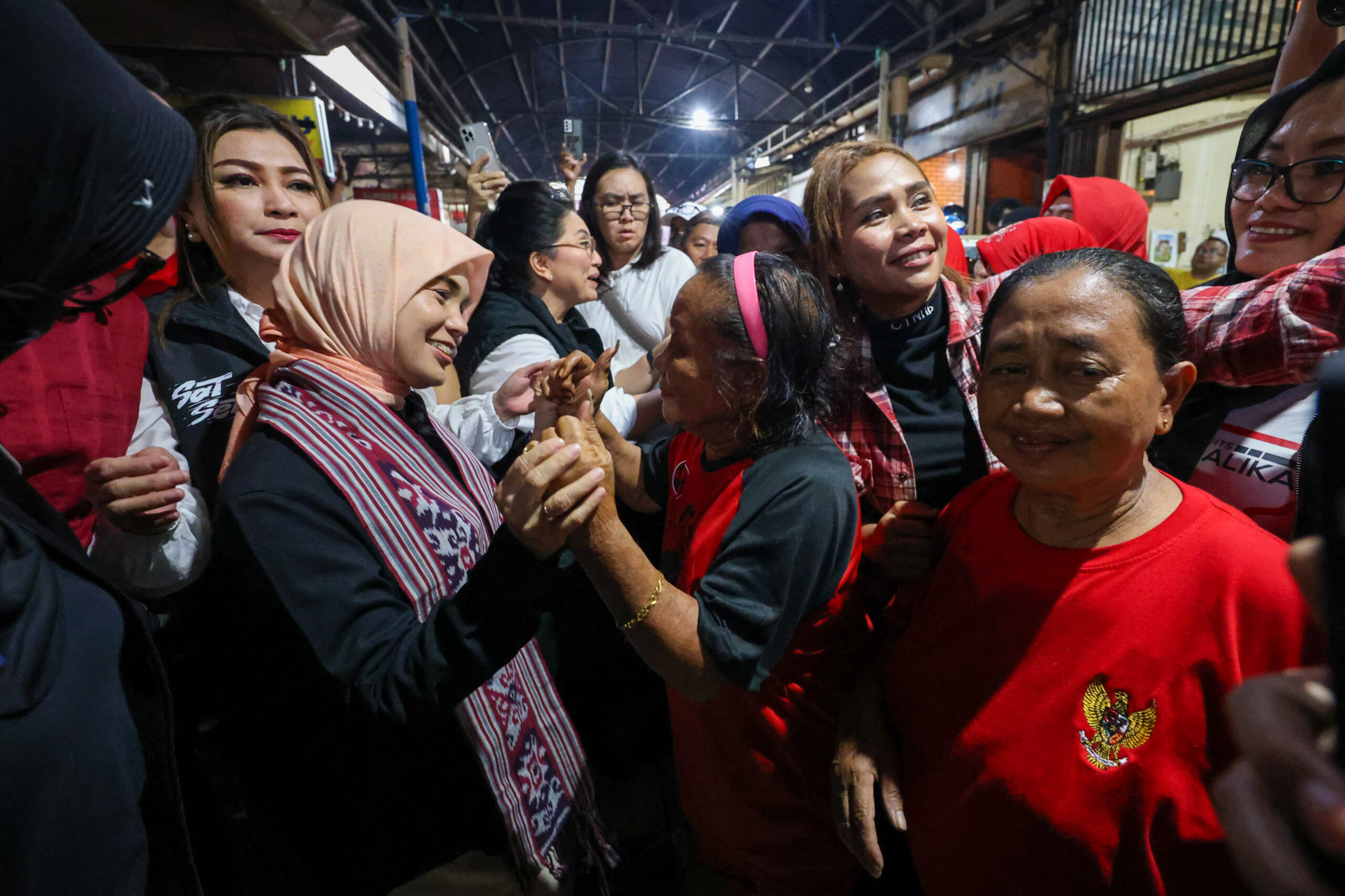Atikoh yang didampingi Rita Tamuntuan dan sejumlah istri kader PDI Perjuangan di Provinsi Sulut pun harus membelah lautan massa yang enggan melewatkan kesempatan momen bertemu langsung istri Ganjar Pranowo.