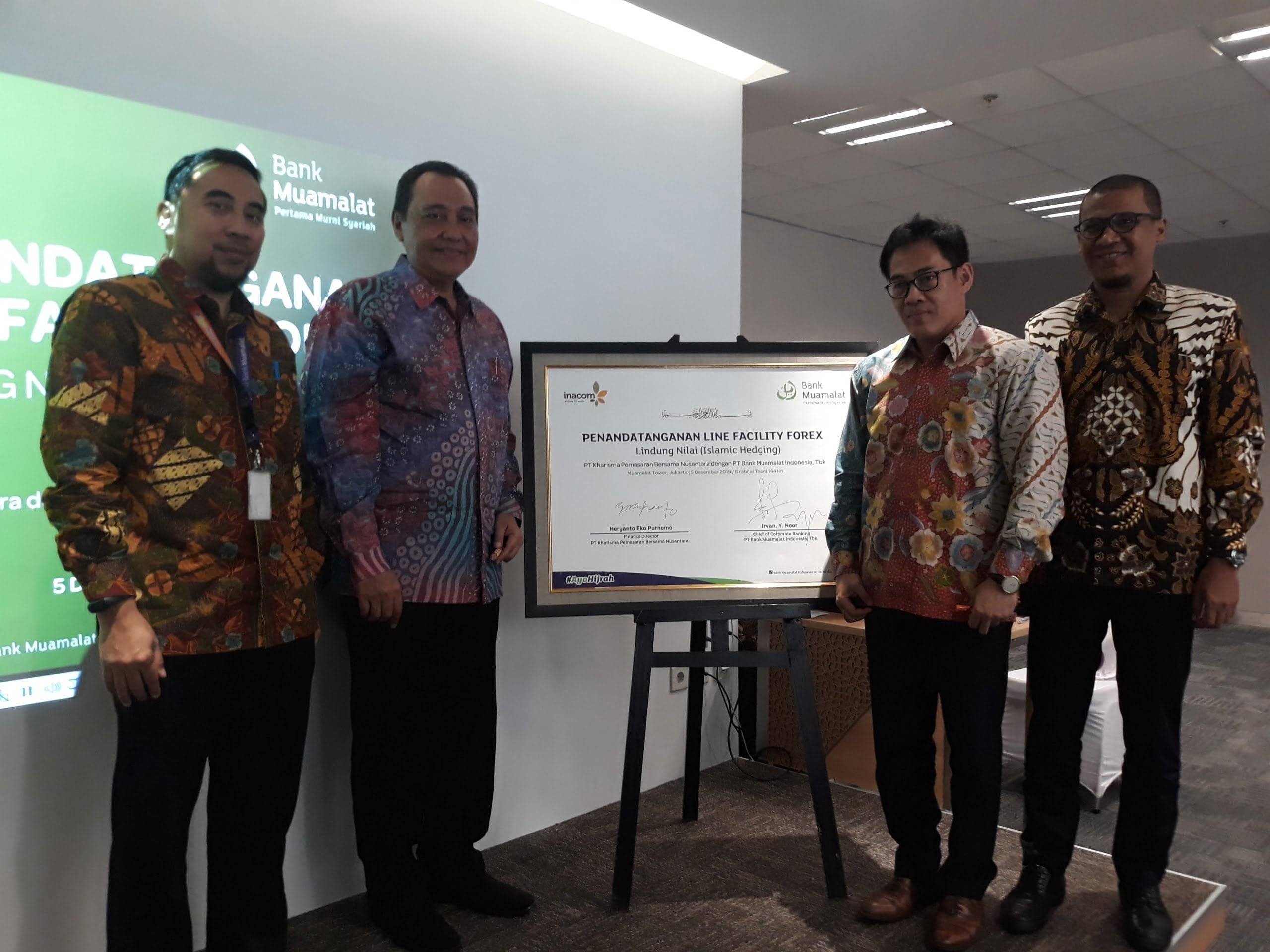 Photo Credit : Irvan Yulian Noor Chief of Corporate Banking Officer Bank Muamalat dan Direktur Keuangan & Umum Inacom Heryanto Eko Purnomo (ka-ki) melakukan penandatanganan di Kantor Bank Muamalat, Jakarta, Kamis (5/12). TELEGRAF/Kawat Berita Indonesia