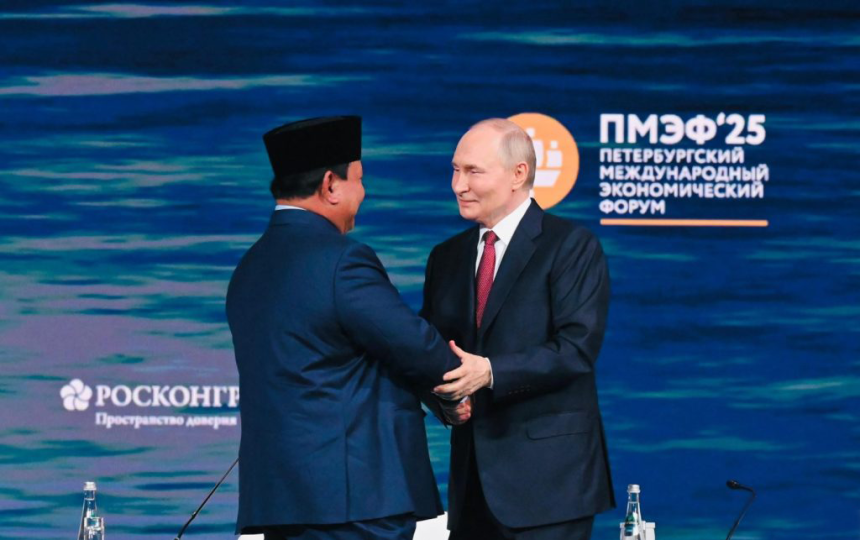 Presiden Republik Indonesia Prabowo Subianto bertemu dengan Presiden Federasi Rusia Vladimir Putin di St. Petersburg, Rusia, Kamis (19/06/2025). FILE/IST. Photo
