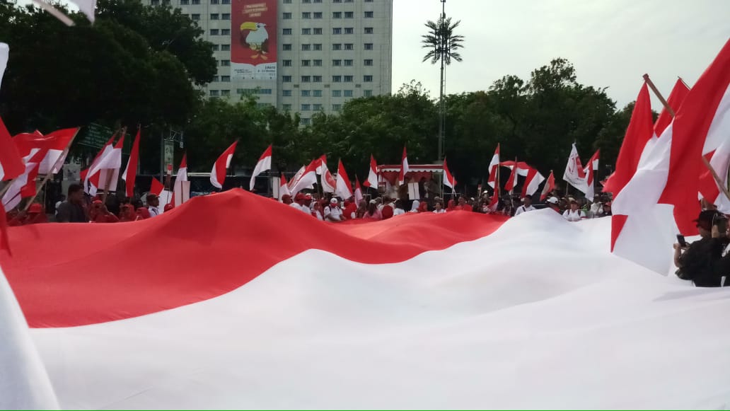 Telegraf, Jakarta – Ratusan orang yang tergabung dalam organisasi Gerakan Jaga Indonesia (GJI) menggelar aksi pengibaran seribu bendera merah-putih di seberang Istana Merdeka, tepatnya di depan Taman...