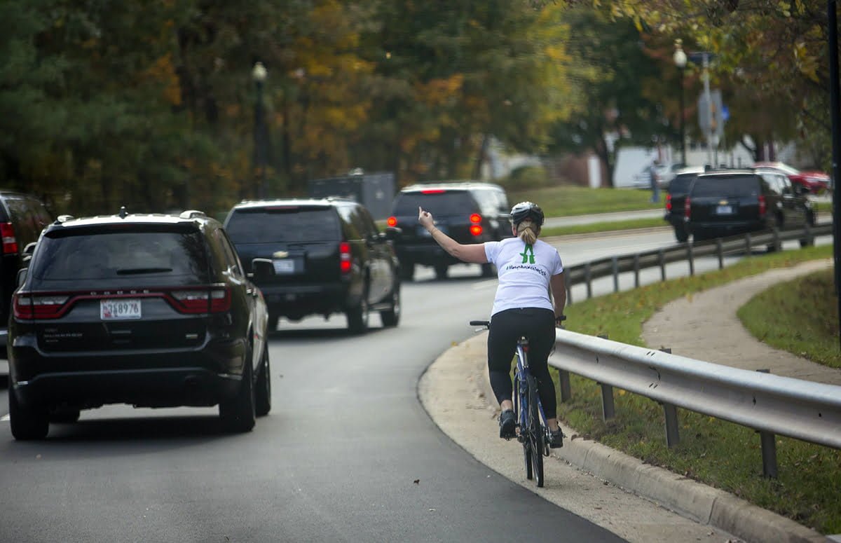 Telegraf, New York – Juli Briskman, ibu dua anak berusia 50 tahun mendadak viral karena aksinya saat bersepeda sambil mengacungkan jari tengah ke arah iring-iringan mobil Donald Trump.